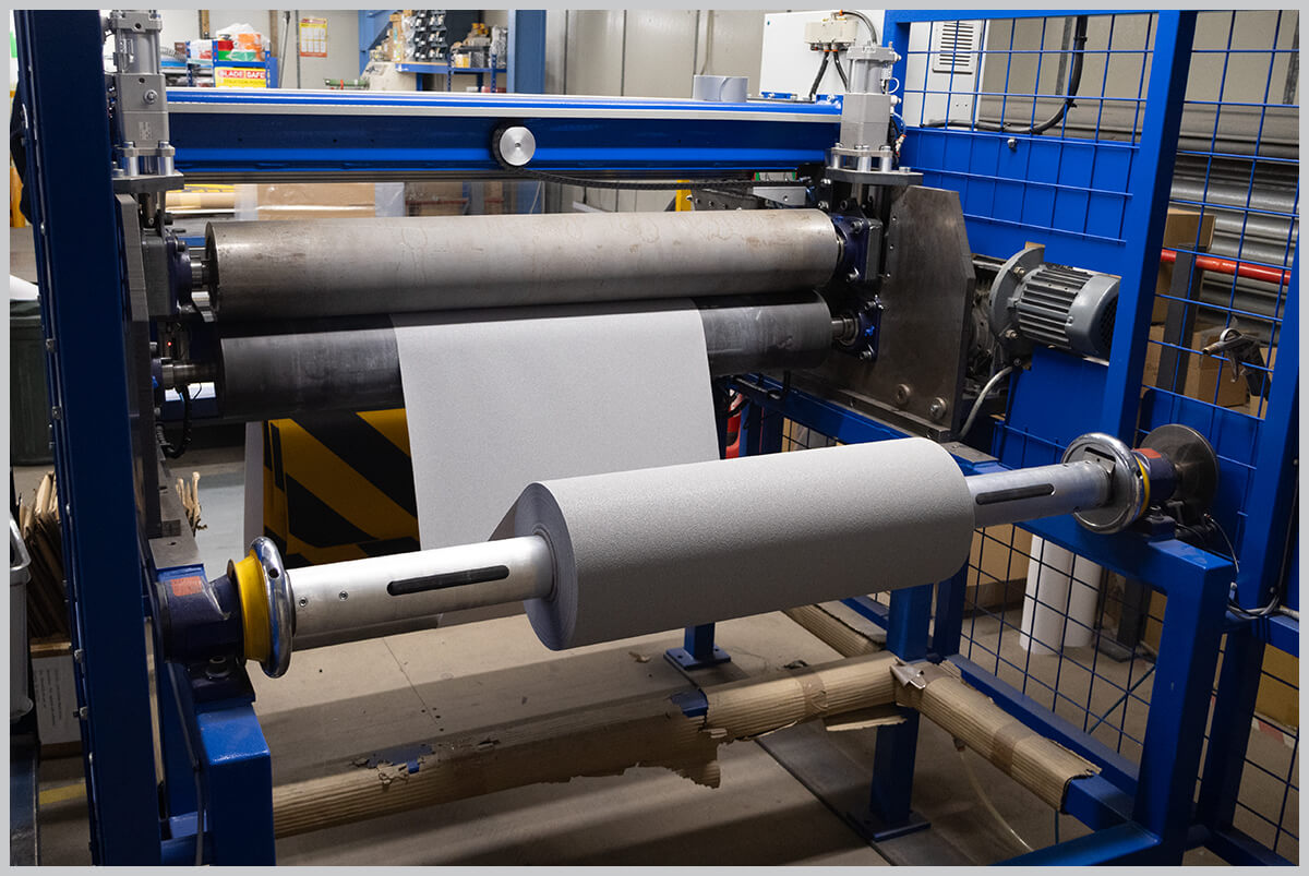 Contamos con una laminadora de corte aplastado diseñada y fabricada a medida, especialmente adaptada para laminar nuestros materiales antideslizantes para pisos. Esta laminadora de vanguardia es capaz de manejar incluso productos de gran grosor y resistencia que otras máquinas no pueden procesar.