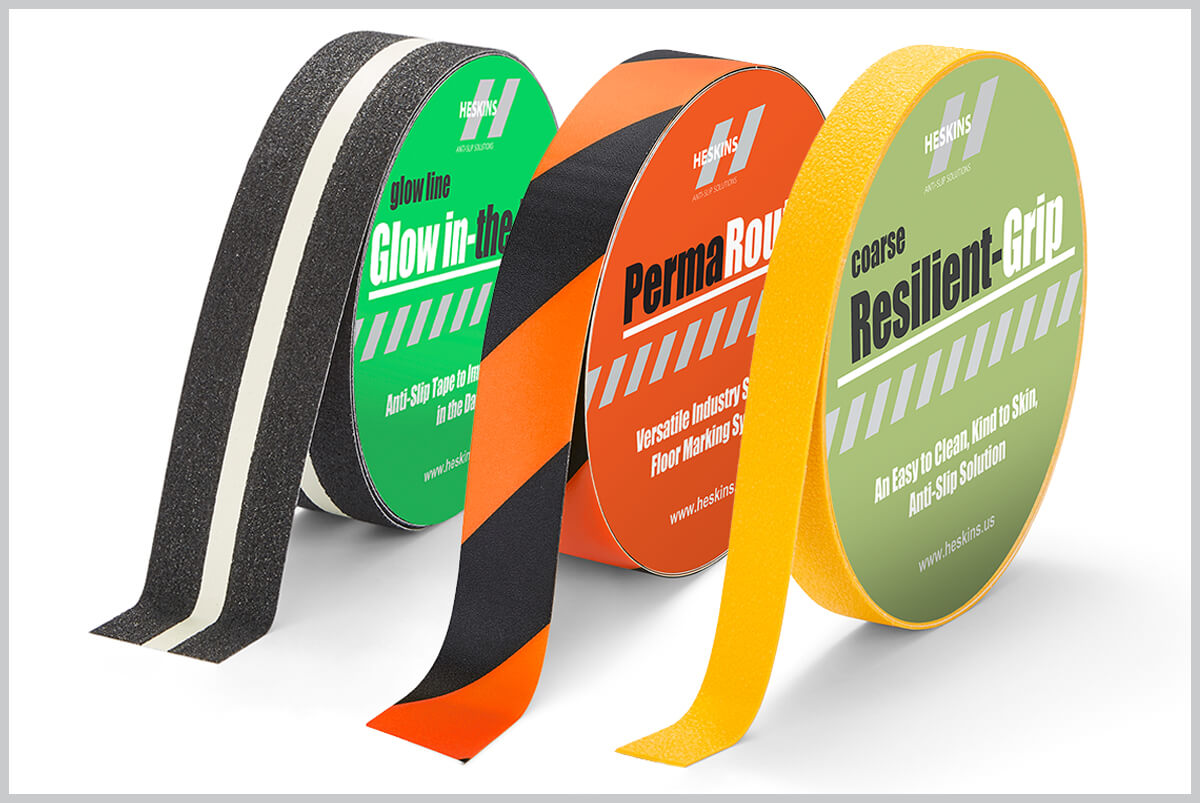 En Heskins, nos enorgullece ofrecer servicios de impresión personalizada en todas nuestras cintas anti deslizantes y de marcado. Nuestro equipo de impresión avanzado nos permite imprimir diseños a todo color y en una amplia gama de anchos, brindándote opciones flexibles para personalizar tus productos.